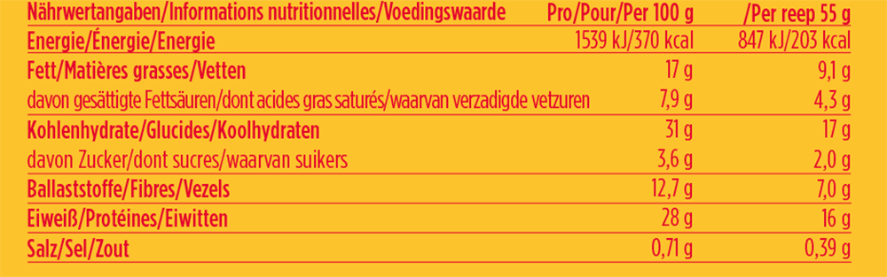 - 16-17 g eiwitten per reep