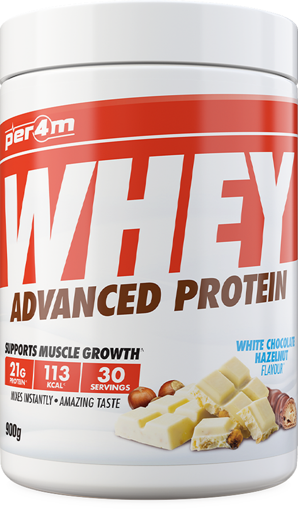 Krijg meer spierkracht met PER4M Whey Protein! Elke portie van deze heerlijke whey proteïne bevat meer dan 20 gram eiwitten om je spiergroei te stimuleren én snel herstel van je spieren na training te ondersteunen.